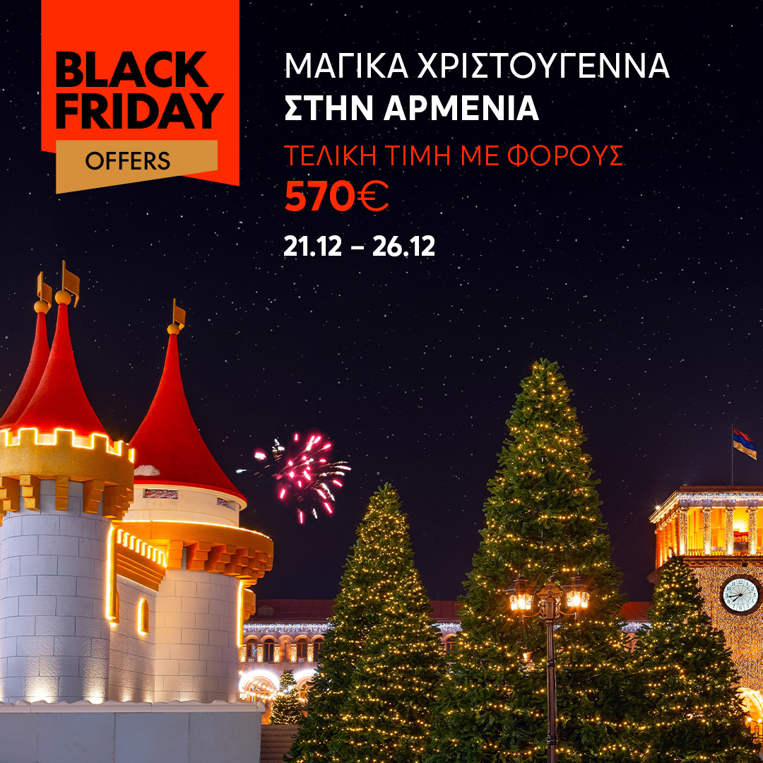 Σήμερα, αφήνουμε το πρόγραμμα ελεύθερο για να ακολουθήσετε τους ρυθμούς της πόλης και να τη ζήσετε όπως της αξίζει: στολισμένη, φωτεινή και γεμάτη χαμόγελα! Μαζί με την αρχηγό σας, θα κάνετε μια ήρεμη, περιπατητική εξερεύνηση στο γιορτινό κέντρο του Γιερεβάν, απολαμβάνοντας την ατμόσφαιρα της πόλης που ντύνεται με φως, χρώμα και καλλιτεχνική φαντασία.
