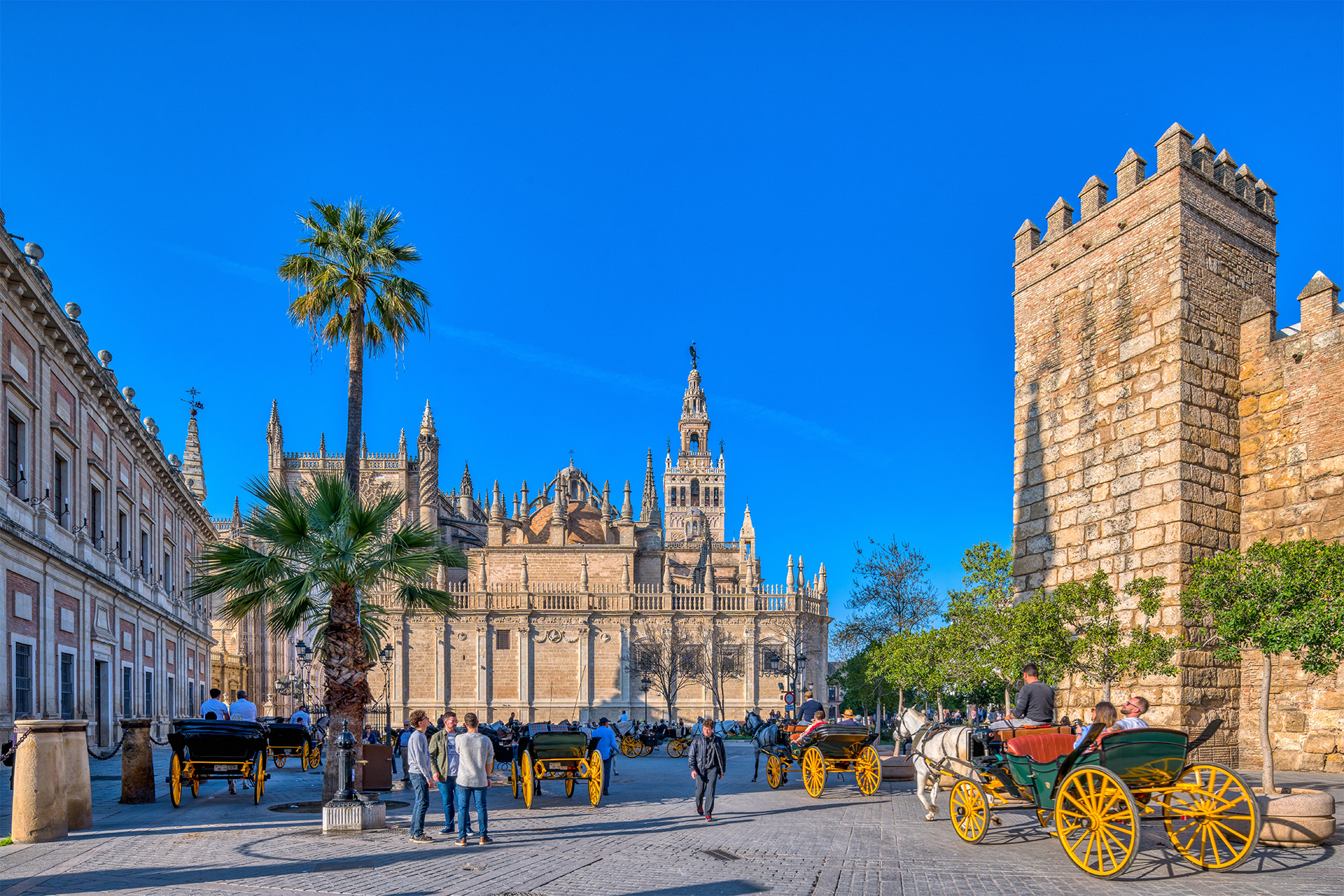 Μετά το πρωινό, ξεκινάμε την ξενάγηση στη Σεβίλλη, μια πόλη με ανδαλουσιανό χαρακτήρα, αραβικές επιρροές και μοναδική αρχιτεκτονική. Πρώτη μας στάση είναι η Πλατεία Αμερικής (Plaza de America) και η μοναδική Πλατεία Ισπανίας (Plaza de Espana) και συνεχίζουμε για την επίσκεψη μας στο Alcázar, το αραβο-ανδαλουσιανό παλάτι με τους υπέροχους κήπους, που παραμένει μέχρι σήμερα βασιλική κατοικία. .Συνεχίζουμε προς την παλιά εβραϊκή συνοικία Santa Cruz, με τα στενά δρομάκια, τις αυλές γεμάτες άνθη και τα γραφικά σπίτια με τις σιδερένιες γρίλιες. Στη συνέχεια, θα θαυμάσουμε εξωτερικά τον Καθεδρικό Ναό της Σεβίλλης, έναν από τους μεγαλύτερους γοτθικούς ναούς στον κόσμο, όπου βρίσκεται και ο τάφος του Χριστόφορου Κολόμβου, όπως επίσης και το Γενικό Αρχείο των Ινδιών , Μνημεία Παγκόσμιας Κληρονομιάς της Unesco . Δίπλα στον καθεδρικό δεσπόζει η Giralda, ο μιναρές που μετατράπηκε σε καμπαναριό. Το απόγευμα είναι ελεύθερο για βόλτες στο Barrio de Triana, τη συνοικία των καλλιτεχνών και των κεραμοποιών. Το βράδυ, προαιρετικά, μπορείτε να παρακολουθήσετε ένα αυθεντικό φλαμένκο σόου. Δείπνο. Διανυκτέρευση.